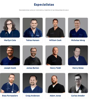 Otro elemento que llamó la atención es que en el sitio web de Cote es posible agendar consultas con otros “especialistas” asociados a su clínica. Sin embargo, al investigar las imágenes de dichos profesionales, se descubrió que algunas corresponden a modelos o profesionales de otras áreas y países. Por ejemplo, un supuesto psiquiatra identificado como Joseph Scott resultó ser un cirujano dentista en Moscú, Rusia, lo cual planteó dudas sobre la transparencia de la clínica.