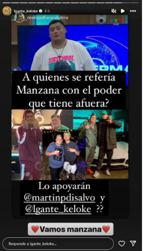 En una intensa noche post-nominaciones en Gran Hermano 2023, la casa se convirtió en un campo de batalla entre Furia y Manzana. Tras la fuerte pelea, dos conocidos personajes de la escena argentina, L-Gante y Coscu, han iniciado una campaña para respaldar a Manzana y evitar su eliminación del juego.