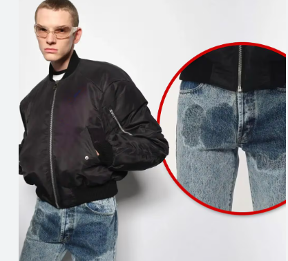 Lo que comenzó como una audaz propuesta de moda en la pasarela de Jordanluca hace un año ha cobrado inesperada relevancia en las redes sociales y los medios de moda masculina internacionales. Se trata de un pantalón vaquero diseñado con una mancha en la zona de la ingle que simula el característico cerco dejado por una fuga de pis.