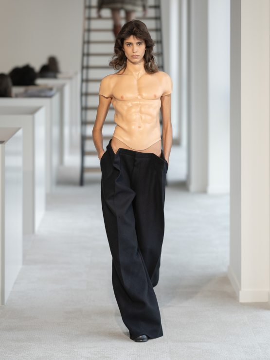 En su última colección “Duranimal” para el otoño de 2025, el diseñador holandés Duran Lantink sorprendió al público con un desfile lleno de audacia y humor. Con su ADN característico de sorpresa y libertad creativa, la pasarela mostró modelos con prótesis mamarias DD de aspecto realista, independientemente del género, desafiando las normas de belleza tradicionales y creando un espectáculo visual impactante.