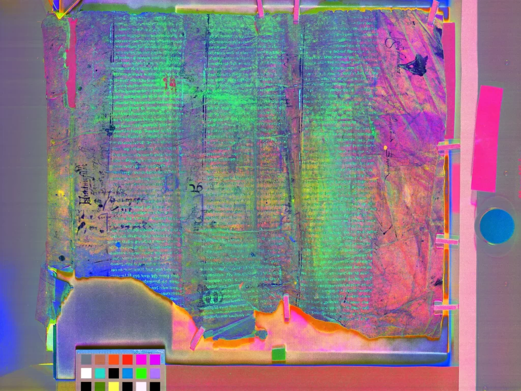 El manuscrito se había reutilizado como encuadernación para los registros de propiedad en Huntingfield Manor, Suffolk, durante el siglo XVI. Su redescubrimiento es el resultado de años de minuciosa investigación, que incluyó el uso de técnicas avanzadas de imagen para revelar detalles ocultos del texto.