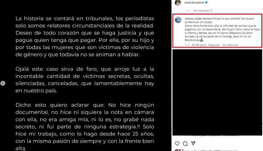 Borghi, quien se defendió en redes sociales tras las críticas sobre su trabajo con la exprimera dama, recibió un reproche de Defranceschi Sadi por supuestos beneficios indebidos del Grupo Clarín. En su publicación, Defranceschi Sadi acusó a Borghi de recibir remises no justificadas para su familia y amigos, sugiriendo que esto constituía una “avivada”.