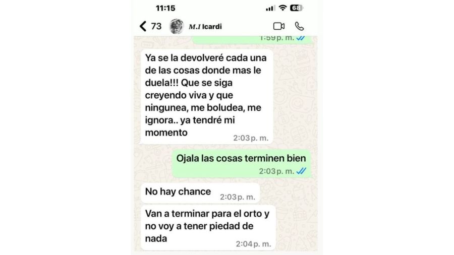 En otro chat publicado por Wanda, el tono se vuelve aún más grave. Aquí, Icardi envía mensajes que Wanda ha interpretado como amenazas directas hacia ella. En la conversación, el futbolista expresa con desdén: “Ya se la devolveré cada una de las cosas donde más le duela. Que se siga creyendo viva, que ningunea, me boludea, me ignora. Ya tendré mi momento”. Ante este comentario, Wanda no duda en compartir las capturas con sus seguidores, dejando en claro que el conflicto entre ellos sigue alimentándose con cada nueva filtración.
